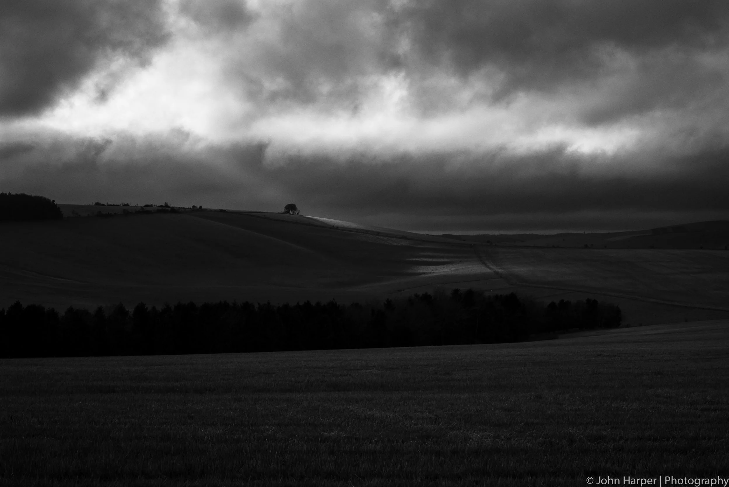 Time to head home. I really did enjoy that trip and it didn't matter about the poor light, if you're ever that way it's well worth a visit. I suspect that in the Summer or during sunsets/sunrises you might struggle to find a place amongst all the other photographers though. A couple of hours to ride back, with thoughts of regaining my mojo, it needs to be found because to start with I have a Wedding to shoot on Saturday! I started thinking about landscapes and the trail of the lonesome tree as the the countryside blurred past. Suddenly as I looked over the fields I caught a fleeting glimpse of what It was I was searching for. It takes time to stop, remove helmet, gloves and get the camera out. The sun was trying to break through the late evening sky and it sent a beam directly onto a lone tree. Ok, I missed that precise moment so you'll have to use a little imagination -