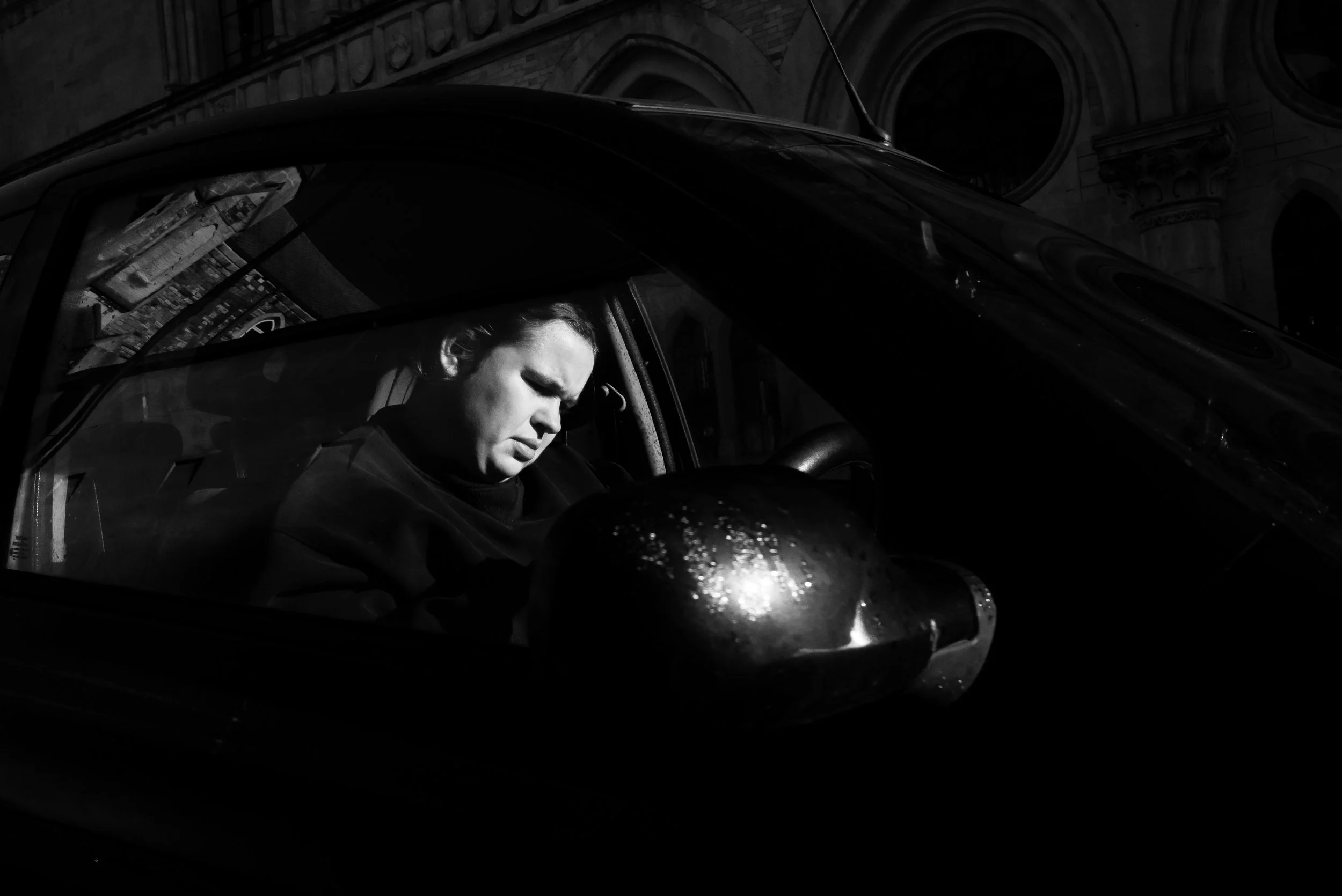I have resolved to make time. We all know that precious commodity on this planet is finite, I love street photography, now just get on with it. If I have another fifteen or so years where I’m active or fit and my eyes are functioning then I’m going to cram in as much as I possibly can. I know there’ll be a lot of crap photos, disappointments, but there’ll be those moments when everything comes together and there are few better feelings that I know. This is the point where I would leave you with a closing shot to demonstrate one of those perfect moments. I had fifteen minutes and consequentially don’t have one. It’s just someone sat in their car that I spotted walking back to my bike.